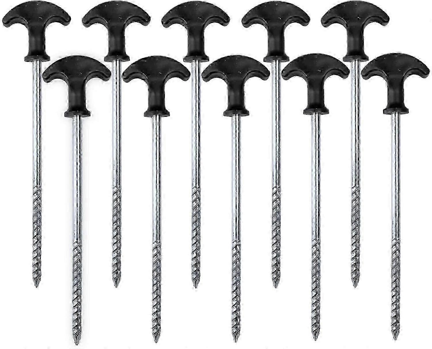 10Pcs 20cm Galvanized Spiral Tent Pegs, Heavy Duty Camping Stakes with Handle for Hiking Gardening