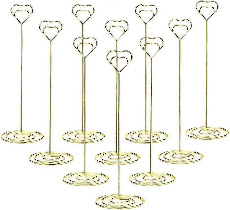10pcs 220mm Place Card Holder Table Number Holder with Heart Shape For Wedding Favors, Gold