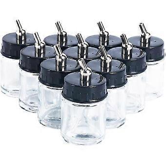 10pcs 22cc Transparent Glass Airbrush Bottles& Lid W/Metal Connector