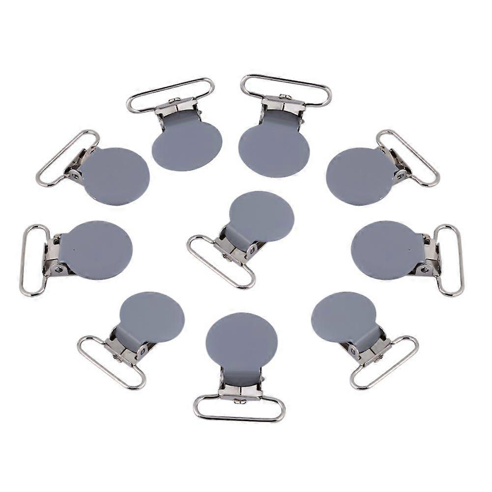 10Pcs 25mm Round Suspender Braces Pacifier Strap Holder Clip DIY Making Supplies(Gray)