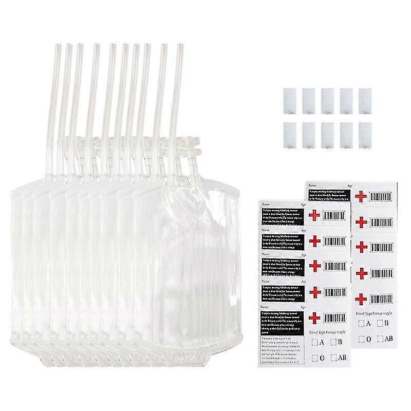 10pcs 400ml Transparent Drink Bag With 10x Stickers Reusable Blood Energy Bag Props Decorations