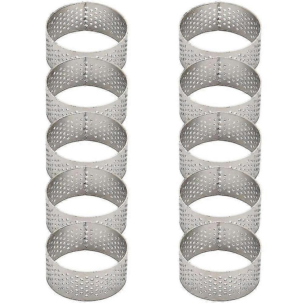 [High-Quality Materials]Perforated Tart Rings Are Made of premium stainless steel, anti-rust, anti-corrosion, durable, smooth surface and easy to clean. High heat resistant, oven safe.[Perforated Design]The Cake Ring has a venting hole design, and the venting holes are evenly distributed and ventilated without leaking. And Porous Tart Ring is easier to release and clean, oven and dishwasher safe.[Wide Applications]Perforated tart ring set is suitable for creating tarts, cakes, mousse and desserts. NOT ONLY for baking, layering, and molding. It's aslo a good choice for hand-made cakes at home.[Easy To And Clean] More easy to release and convenient to . Easy for cleaning, oven and dishwasher safe.Colour: silverMaterial: stainless steelSize: 4.5 x 2cmPackage Contents:10 x Tart RingOnly the above package content, other products are not included.Note: Light and different displays may the color of the item in the a little different from the real thing. The measurement allowed error is +/- 1-3cm.