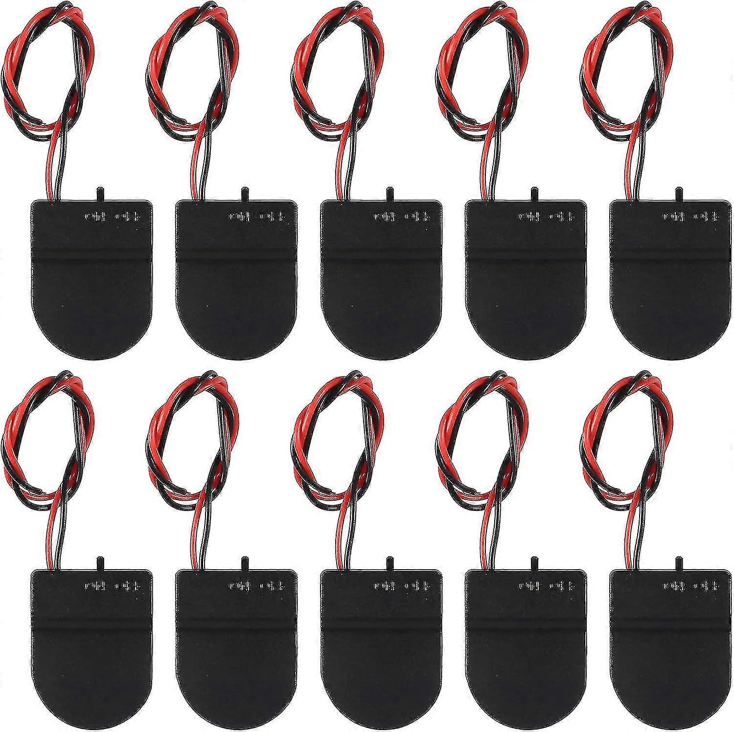 10pcs Cr2032 Battery Holder 1x 3v Coin Cell Battery Socket Holder Case Box With Wire Lead On-off Switch (black)