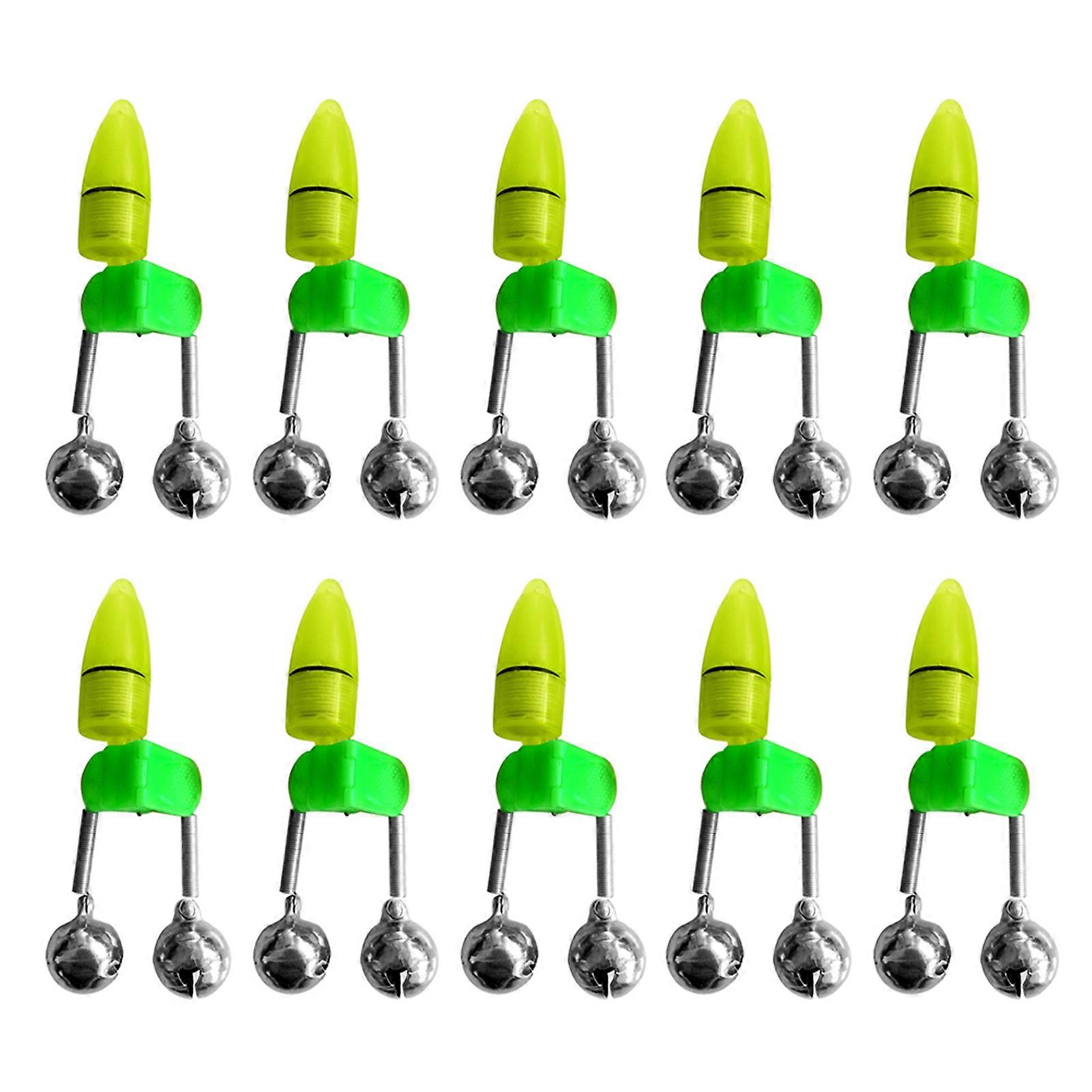 10pcs LED Night Fishing Rod Bite Bait Alarm Light with Twin Bells Ring Fishing Bite Alarm Indicator