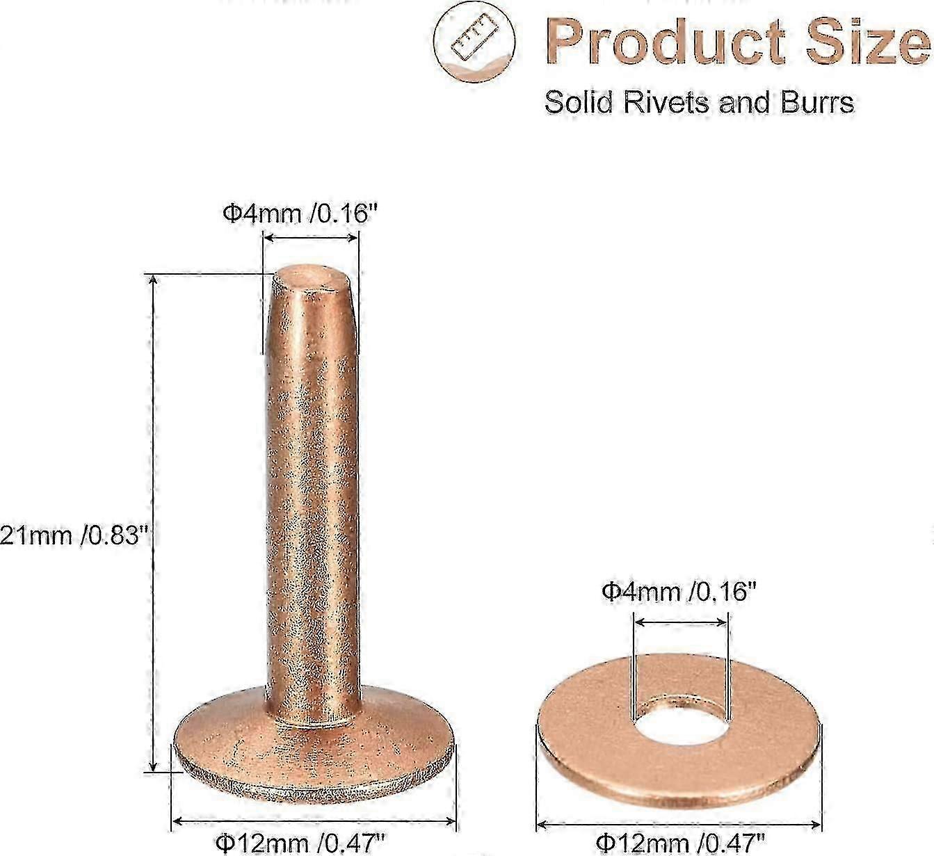 10 Set Copper Rivets And Burrs, 12x4x21mm Solid Leather Copper Rivet Fastener For Leather Diy Craft Supplies, Copper Tone