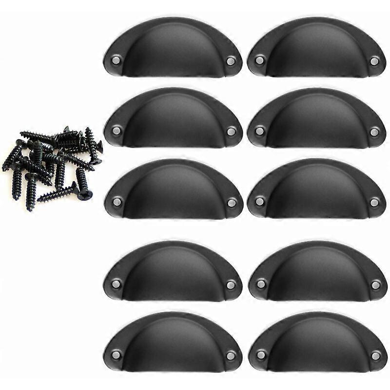 10 Vintage Shell Handles for Kitchen Cupboard Drawer, Incurved Iron Retro Cupboard Door Knob 8,2 cm x 3,5 cm Black