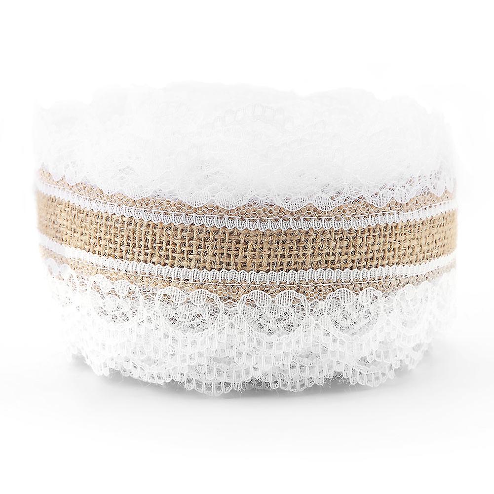 10m Natural Jute Roll 6cm Wide Hessian Burlap Ribbon, Heart Shaped Lace Trim for Wedding Christmas Decor Crafts