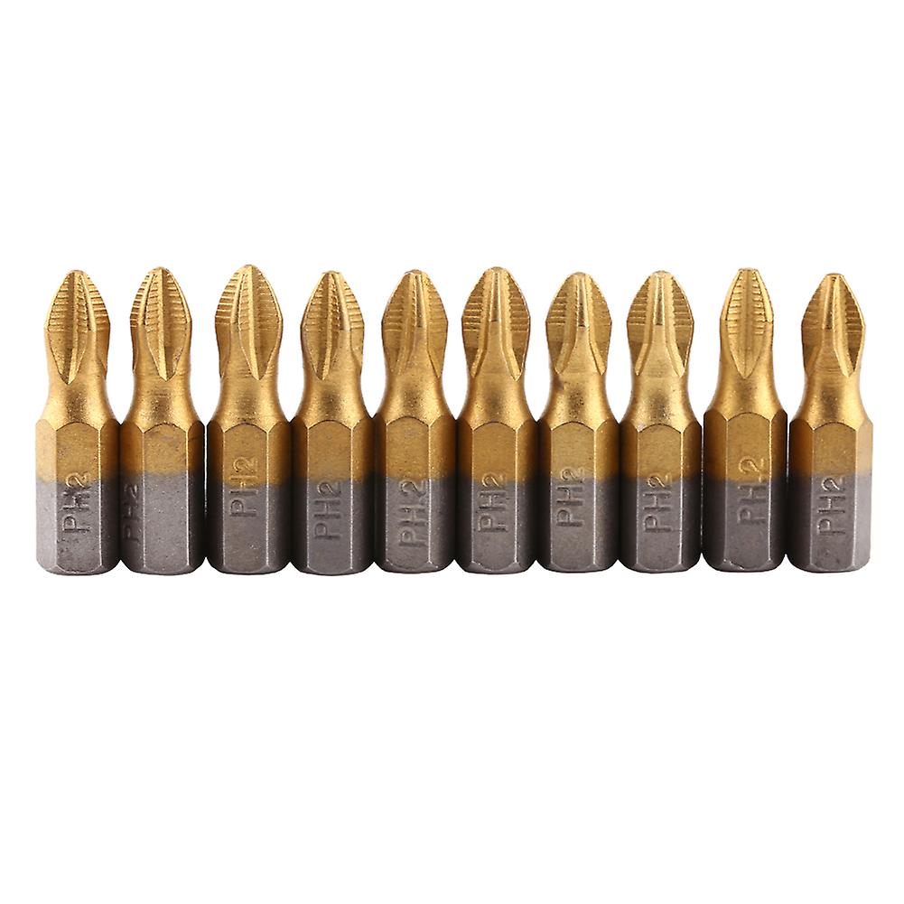 10 Pcs Titanium Coated 1/4"Hex Shank 25mm Length PH2 Antislip Magnetic S2 Screwdriver Bits Set