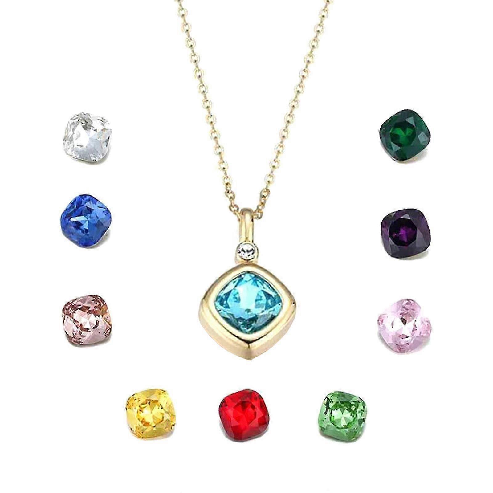 Square Gold Gemstone Necklace, Floating Charm Living Memory Locket With 10pcs Birthstones For Women Girl, 15mm Round Diy Stainless Steel Pendant With
