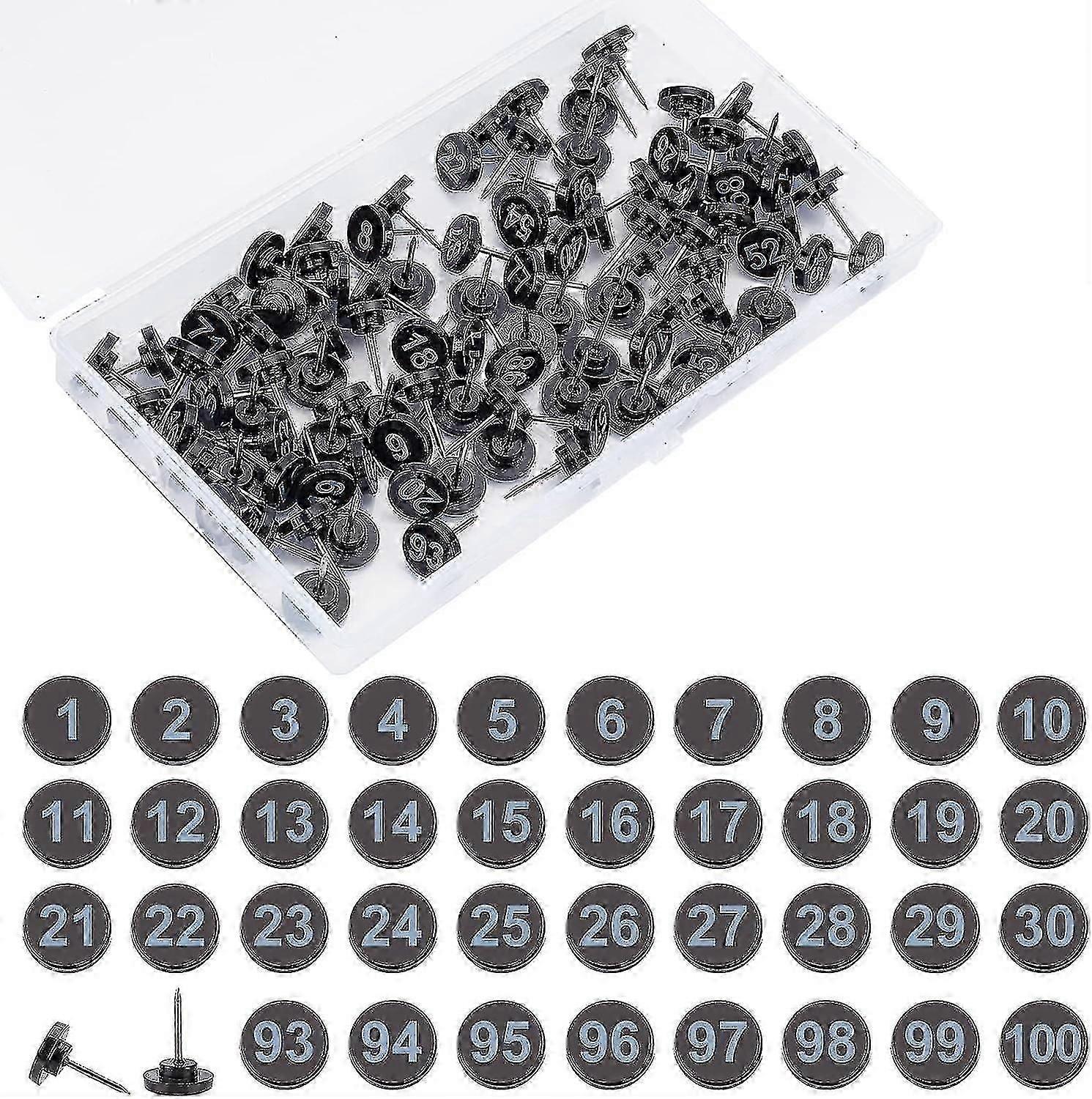 100 Pcs Numbered Push Pins, Black Base Map Number Push Pins With Numbers 1-100 Drawing Push Pins Plastic Push Pins For Maps Photo Presentation Poster