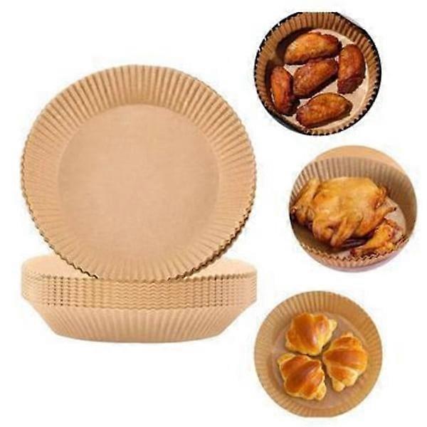 100-Pack Air Fryer Papper - Bruna 20 cm. Brun French Fry Barbecue Waterproof and Oil-proof Silicone Paper Household BBQ Baking Grease-proof Paper Mat