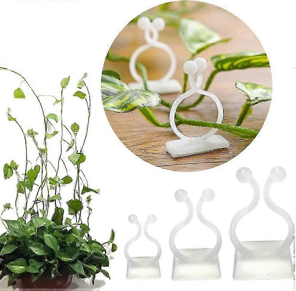 100 Pack Wall Mounted Climbing Plant Supports - 3 Sizes - Self-Adhesive Hooks - Invisible Fixing - Vegetable Fixing Clips (100pcs White Clip)