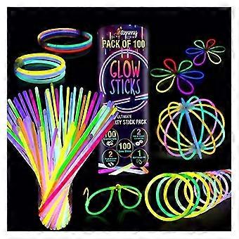 100 premium glow sticks for halloween- party pack 8 inch with connectors to make neon bracelets necklaces eye glasses and balls for party supplies