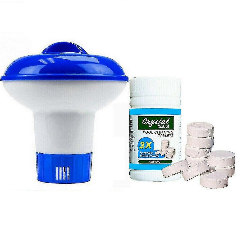 100 Chlorine Tablets +floating Chemical Dispenser Hot Tub Swimming Pool Cleaning#d077350