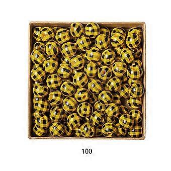 100pcs Wood Beads Plaid Pattern Delicate Round Space Beads 16mm Yellow