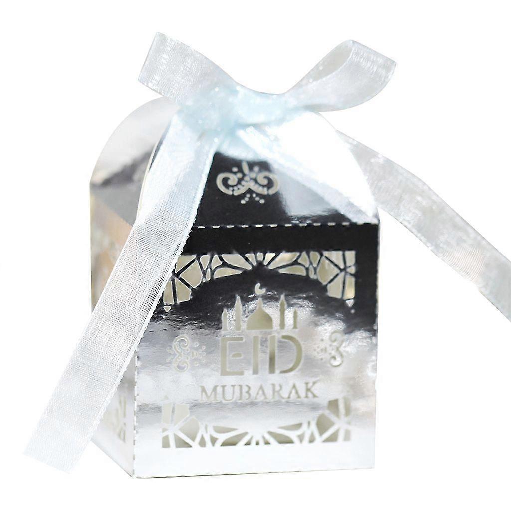 100pcs Eid Paper Candy Box Ramadan Decoration Mubarak Hollow Cut Gift Boxes Islamic Muslim Party Festival Supplies