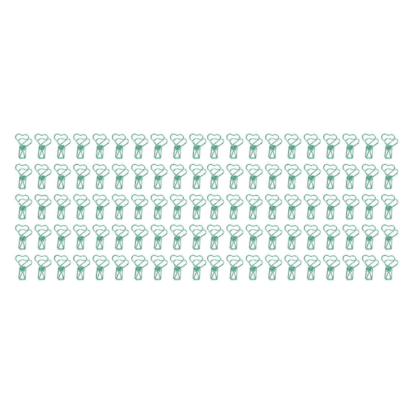 100pcs Binder Clips Cute Cartoon Heart Shape Metal Hollowed Long Tail Clips Paper Clamps Office Supplies Green