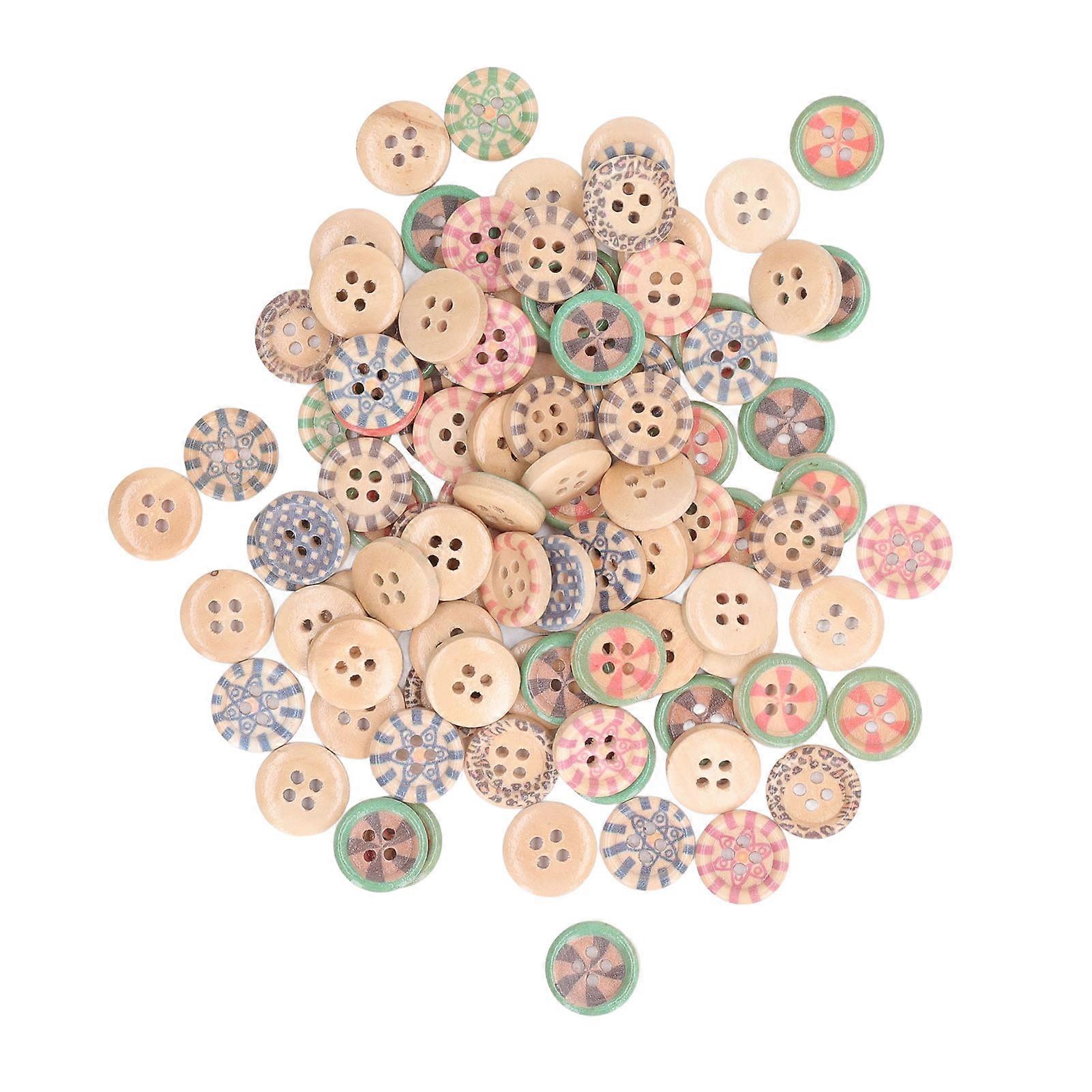 100Pcs Wooden Flower Buttons Vintage Design Colored Cute Appearance Painted Wooden Flower Buttons for DIY Crafts Decoration