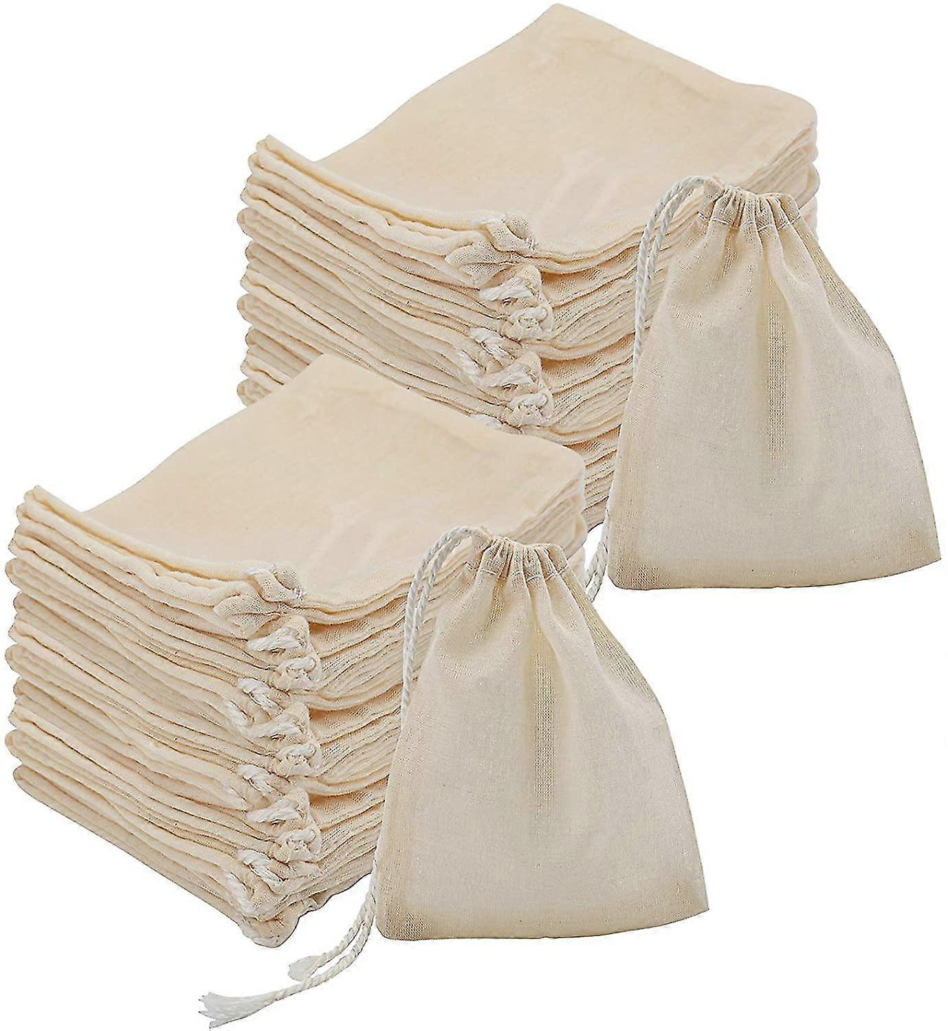 100 Pieces Cotton Drawstring Bags, 4 X 3 Inches/10 X 8cm Natural Unbleached Muslin Bag For Spice, Tea, Herbs