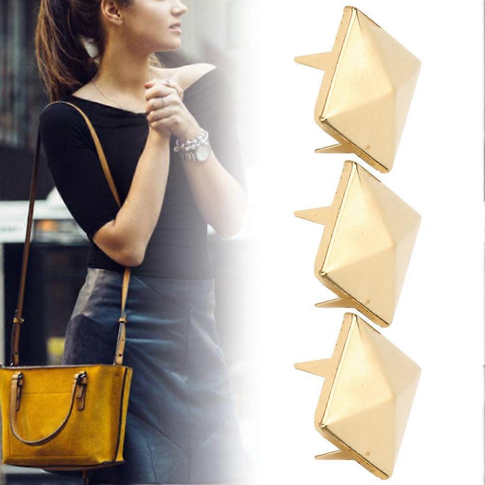 100pcs Square Pyramid Punk Rivets 4 Claw Metal Studs for Bracelets Clothing Shoes HandbagGold 12mm