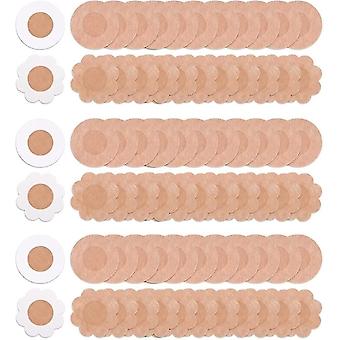 100 Pcs Nipple Covers Breast Pasties Comfortable Disposable Non-woven Nipple Stickers Self-adhesive Petal Bra Pasties For Women (flower, Round) Beige