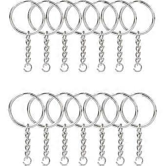 100pcs Split Key Ring With Chain 1 Inch, Split Key Ring With Chain Silver Color Metal Split Key Chain Ring Parts With Open Jump Ring And Connector
