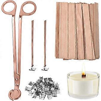 100 PCS Thickened Wood Wicks for Candles Making with Wick Trimmer, Naturally Smokeless Candle Wicks for Long Lasting A
