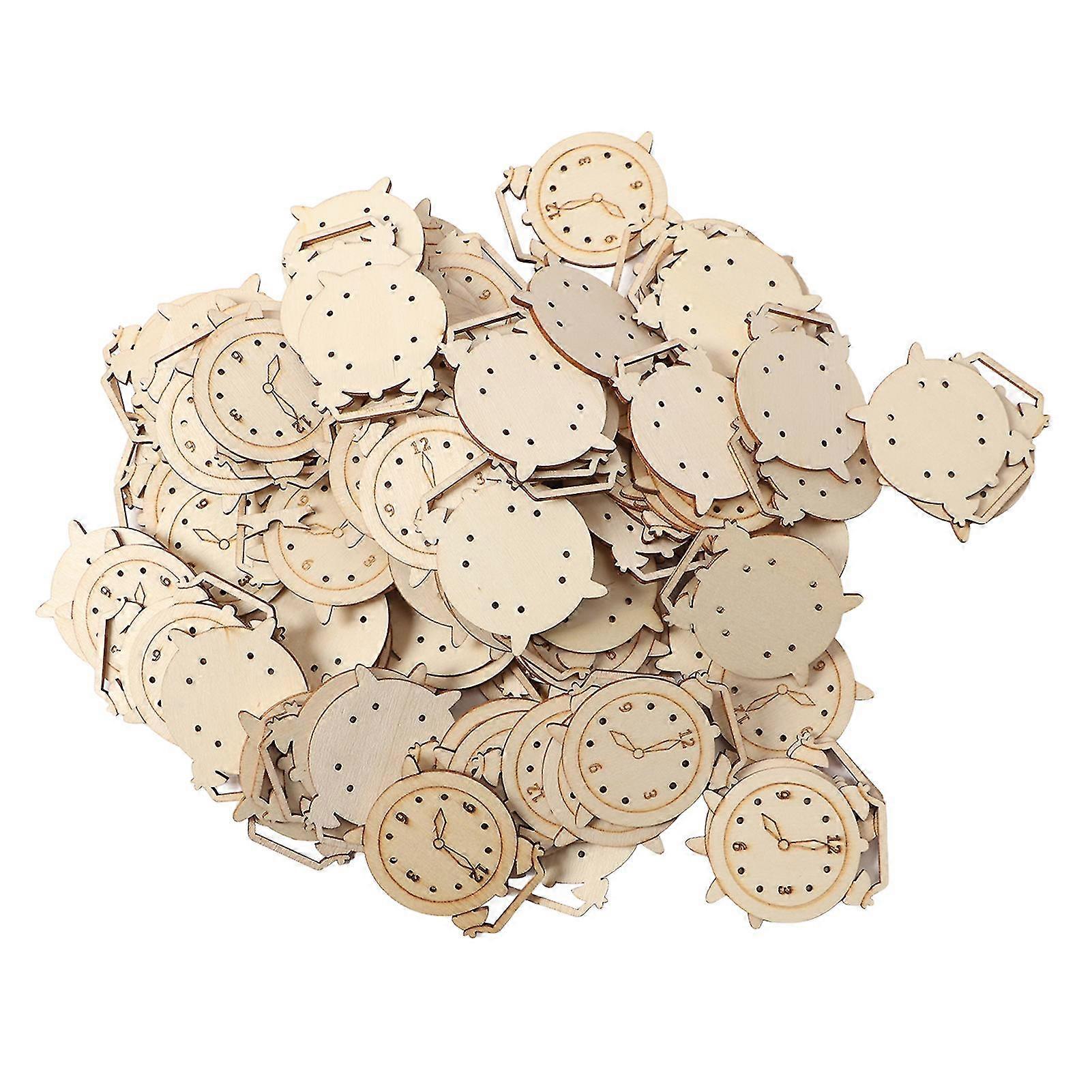 100pcs Unfinished Wooden Alarm Clock Cutouts DIY Innovative Hand Painted Unfinished Wood Slices for Kids Crafts Home Decor
