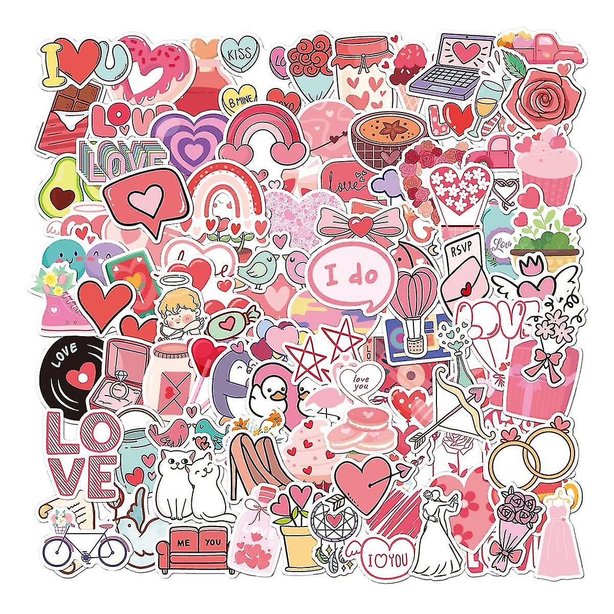 100pcs Heart Shape Pink Love Cute Stickers Love You Scrapbook Waterproof Trendy Stickers For Girls Kids Luggage