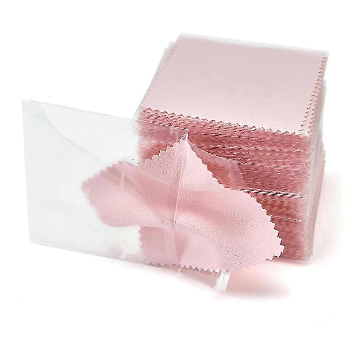 100PCS Jewelry Cleaning Cloth,Professional Polishing Cloth Individually Wrapped,Pink Silver Polishi