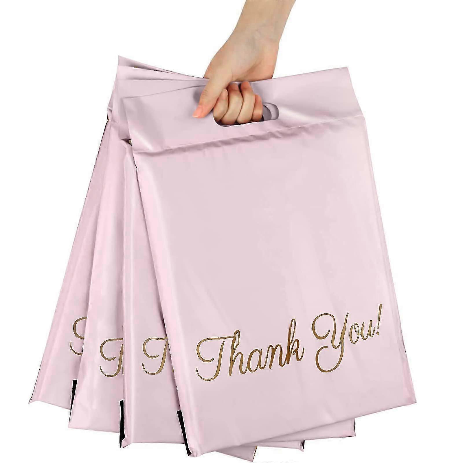 100 Pieces Plastic Mailing Envelopes, Waterproof Strong Mailing Bags with Handle for Packing, Storage, Shopping, 32*40cm+6cm+5cm(Pink)
