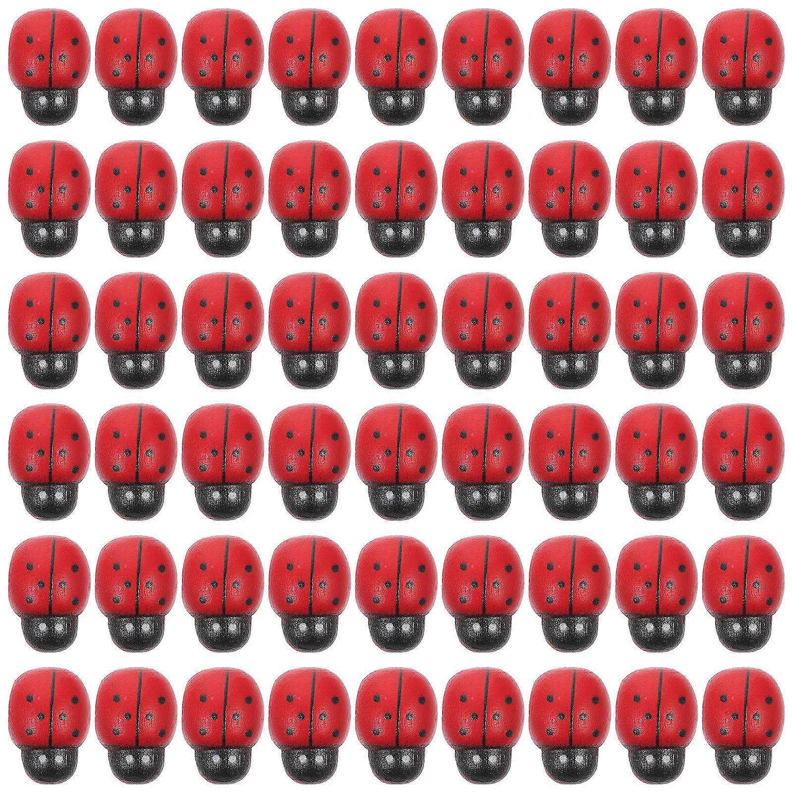 100pcs Wooden Ladybug Stickers for DIY Crafts Self Adhesive Mini Figurines for Scrapbooking and Micro Landscape Decoration
