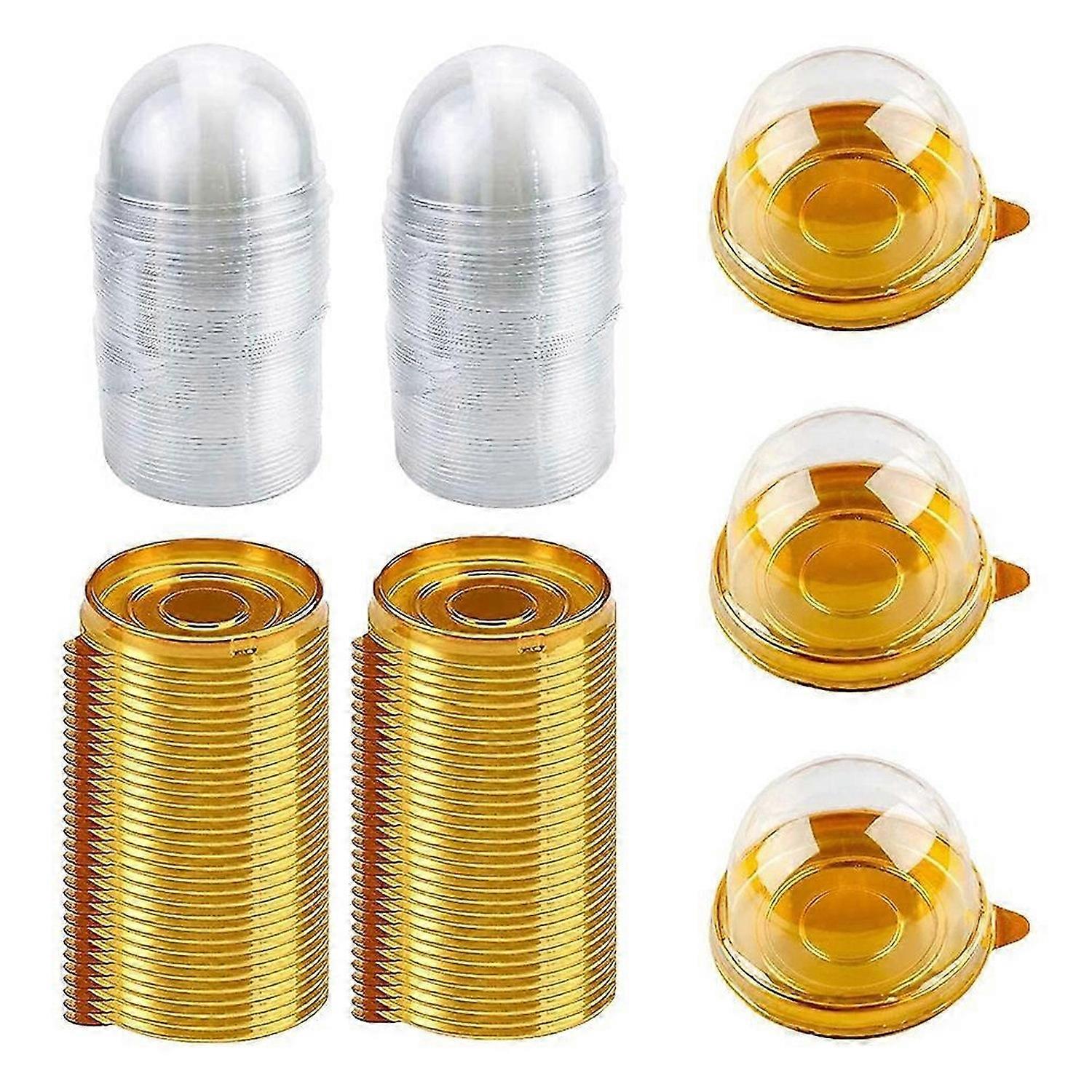 100 PCS Clear Plastic Mini Cupcake Box Round Cupcake Mooncake Dessert Container Box Cookies Muffins