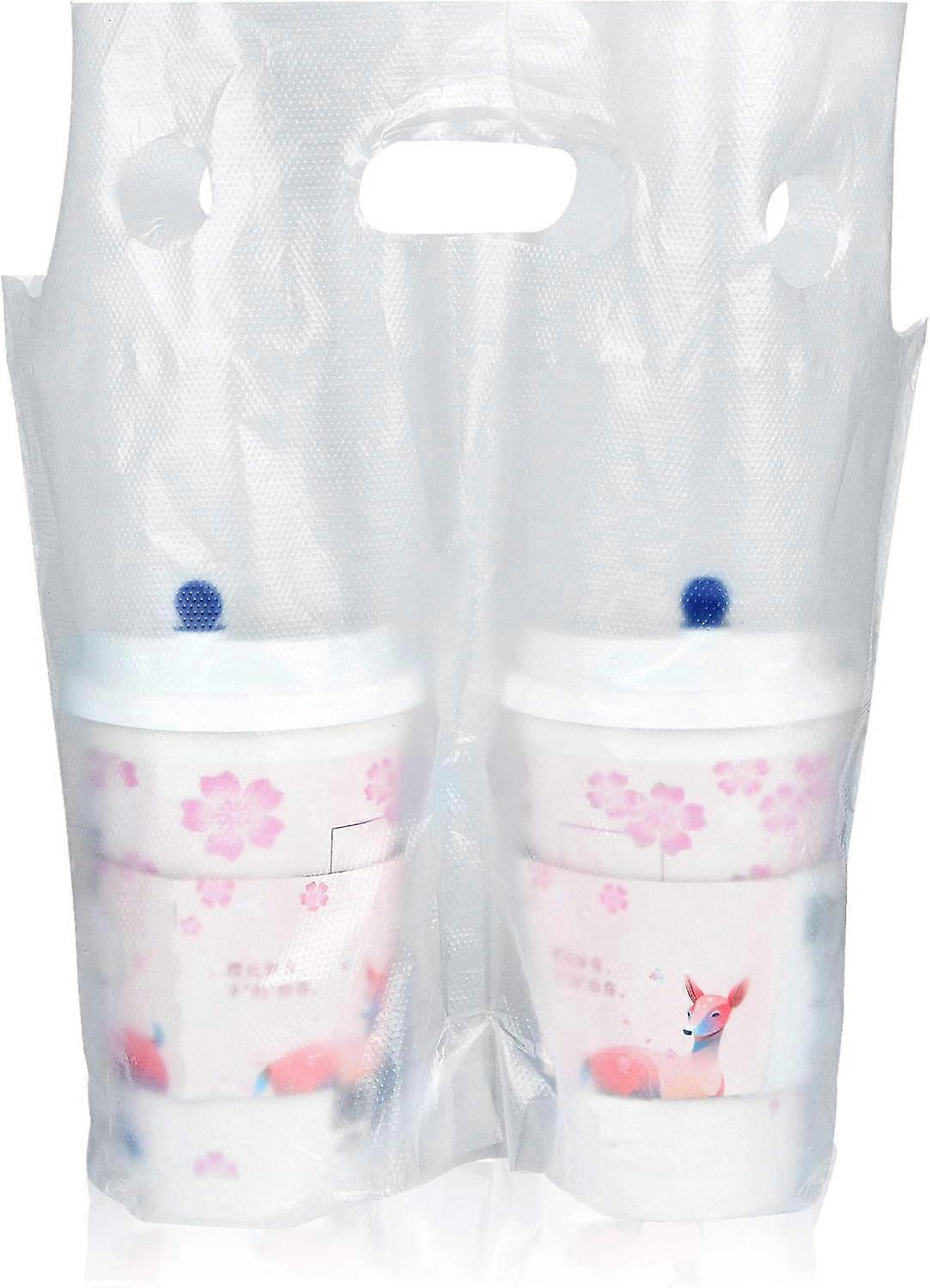 100PCS Plastic Handle Drink Carriers, Professional Clear Drink Packaging Bags - Hold 2 Cups, Portable Hanging Cup Carrier For Delivery Take Out Bever