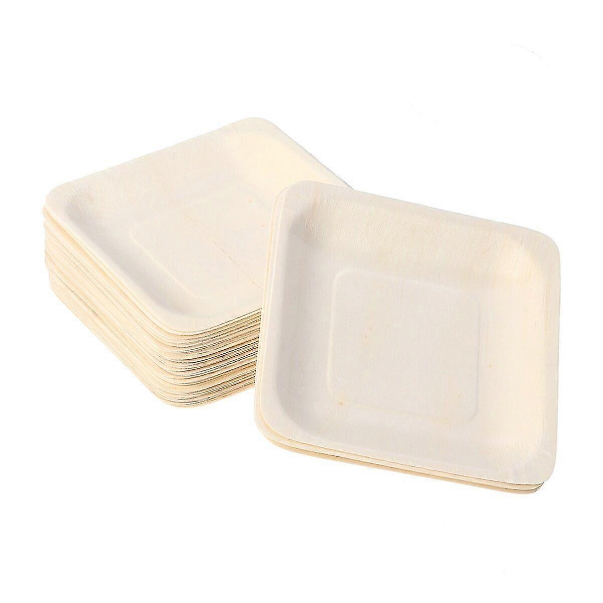 100 Pcs Bamboo Disposable Plates Serving Cake Plate Dessert Plate Wooden Plate Wooden Square Plates Disposable Party Plates