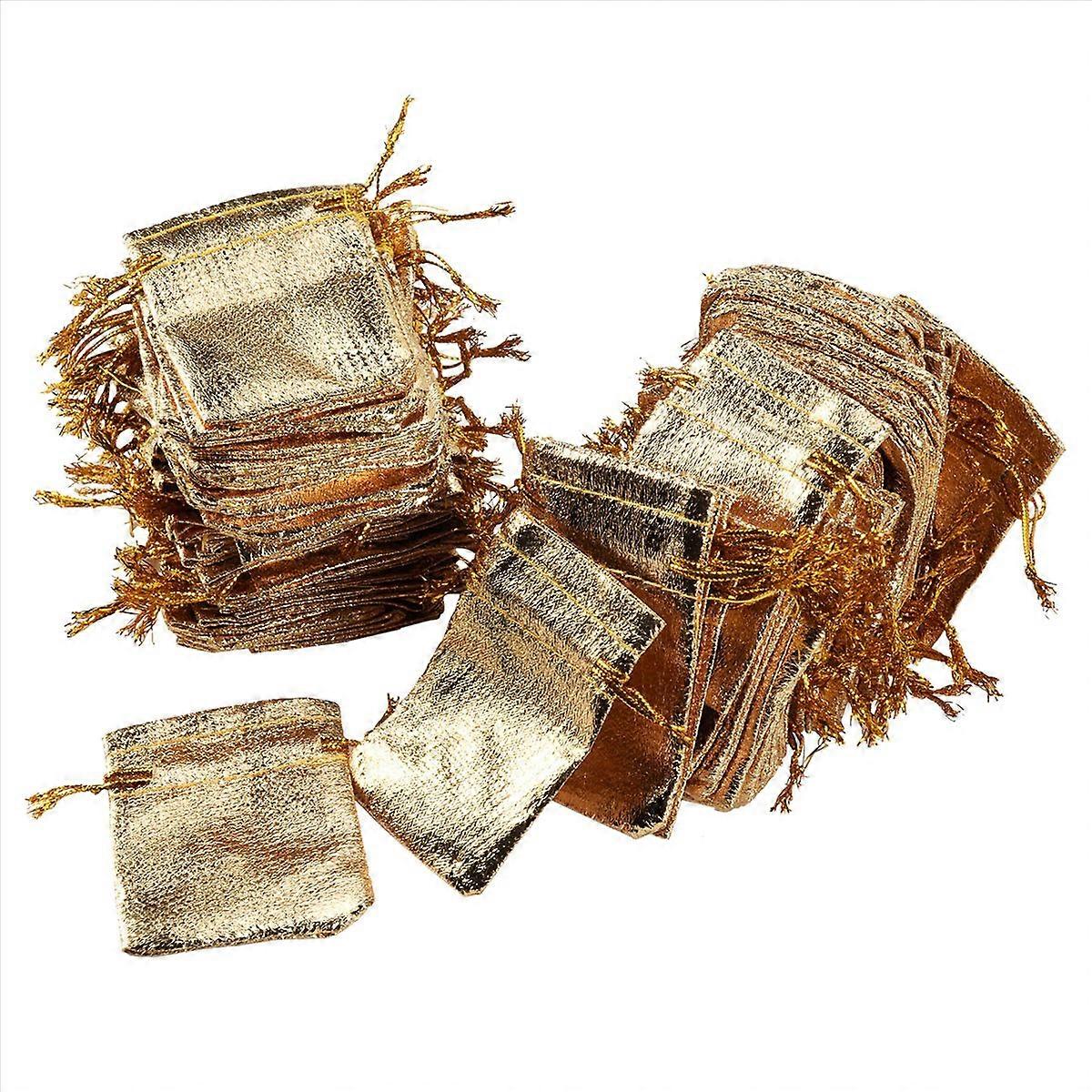 100Pcs Gold Foil Organza Bag Candy Bags Gift Packaging Bags 5x7Cm