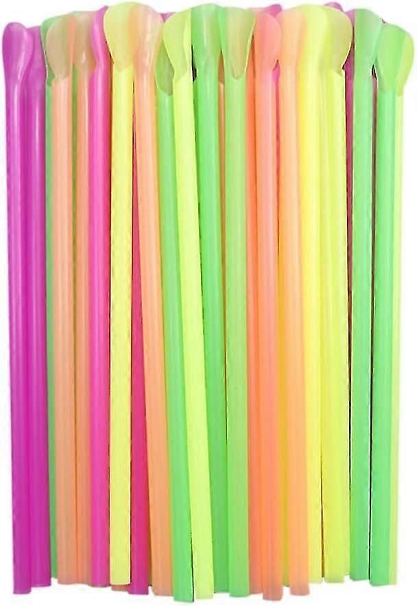 100pcs Straws, Spoon Scoop Straws For Smoothies Slushies Ice Cones Snow Cones Juice Milkshakes-hy