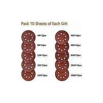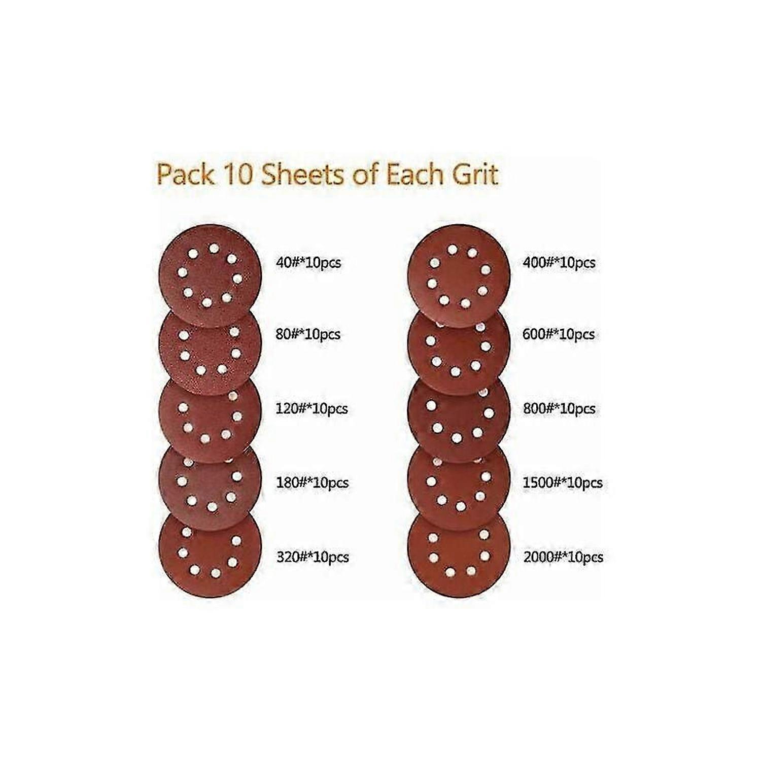 100pcs Sanding Disc Spta Sanding Discs 40/80/120/180/320/400/600/800/1500/2000 125mm Grit Size Ideal Compatible with Hs CHAM Sanding/Polishing/Routing