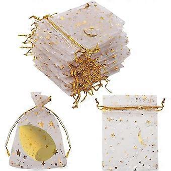 100 Pieces Moon Star Organza Jewelry Candy Bags, 2.7x3.5 Inch Favor Bags Gift Pouch with Drawstring for Wedding Party Valentine's Day