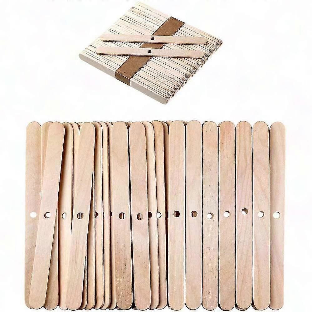 100 pieces, length 11.4 cm, width 10 mm; hole diameter 4 mm. Long term use, made of high quality wood. Perfect for making large batches of candles at once Easy to use, fits most container sizes, works great for centering and holding most types of wicks directly into the container while the wax sets. Such as jelly jars, tea cups, soda/soup cans, sea shells, bowls, coffee cups, flower pots, etc. Essential for homemade candles Very sturdy and well designed, essential for candle making. Candle wick clips are easy to use for beginners and professionals.