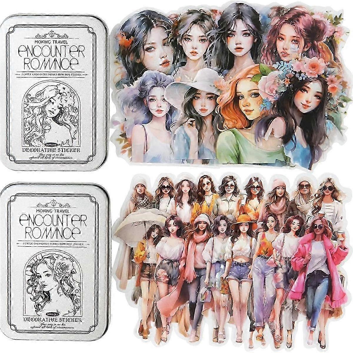 100pcs Character Theme, Scrapbook Stickers Kit For Journaling, Ephemera Packs For Junk Journals, With Iron Storage Box