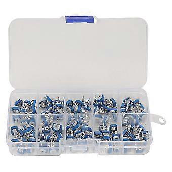 100Pcs 10 Values Blue White Variable Resistor Trimmer Pot Electronic Component with Box RM065