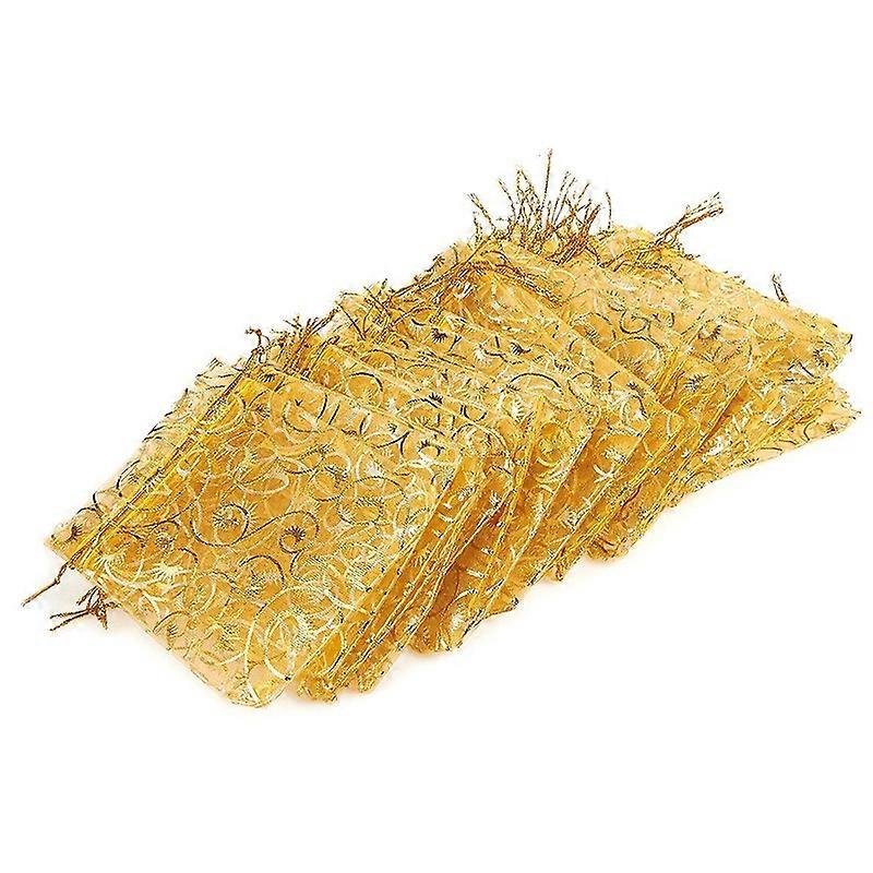 100Pcs 10X15cm Eyelash Printed Gold Organza Bags Jewelry Pouch Bags Organza Drawstring Pouches for