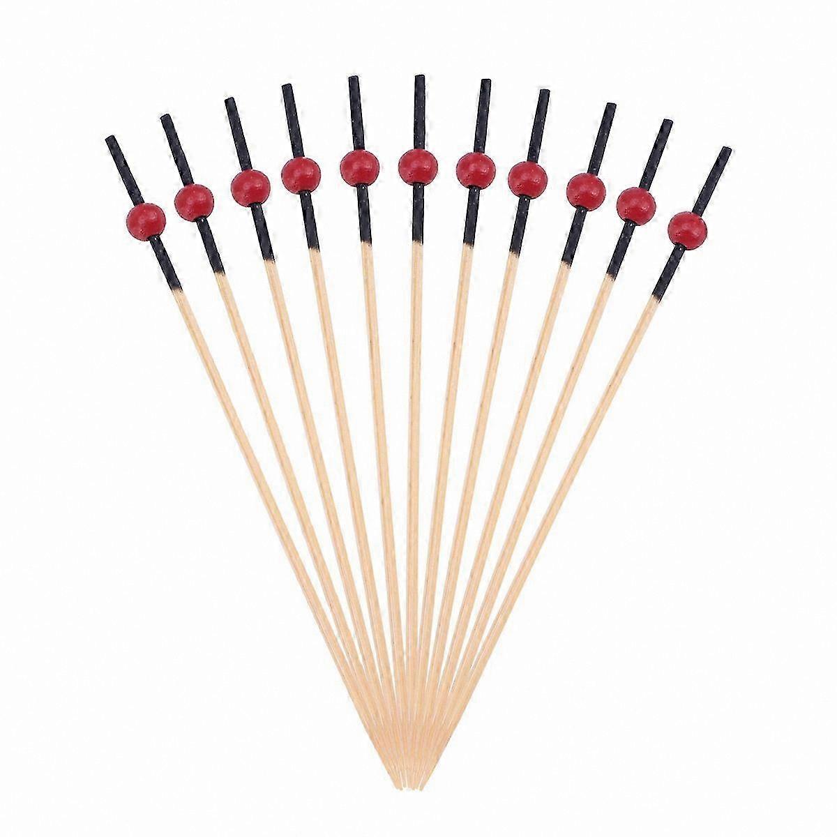 100 Pieces 12cm Appetizer Picks with Round Beads for Parties (Black and Red)