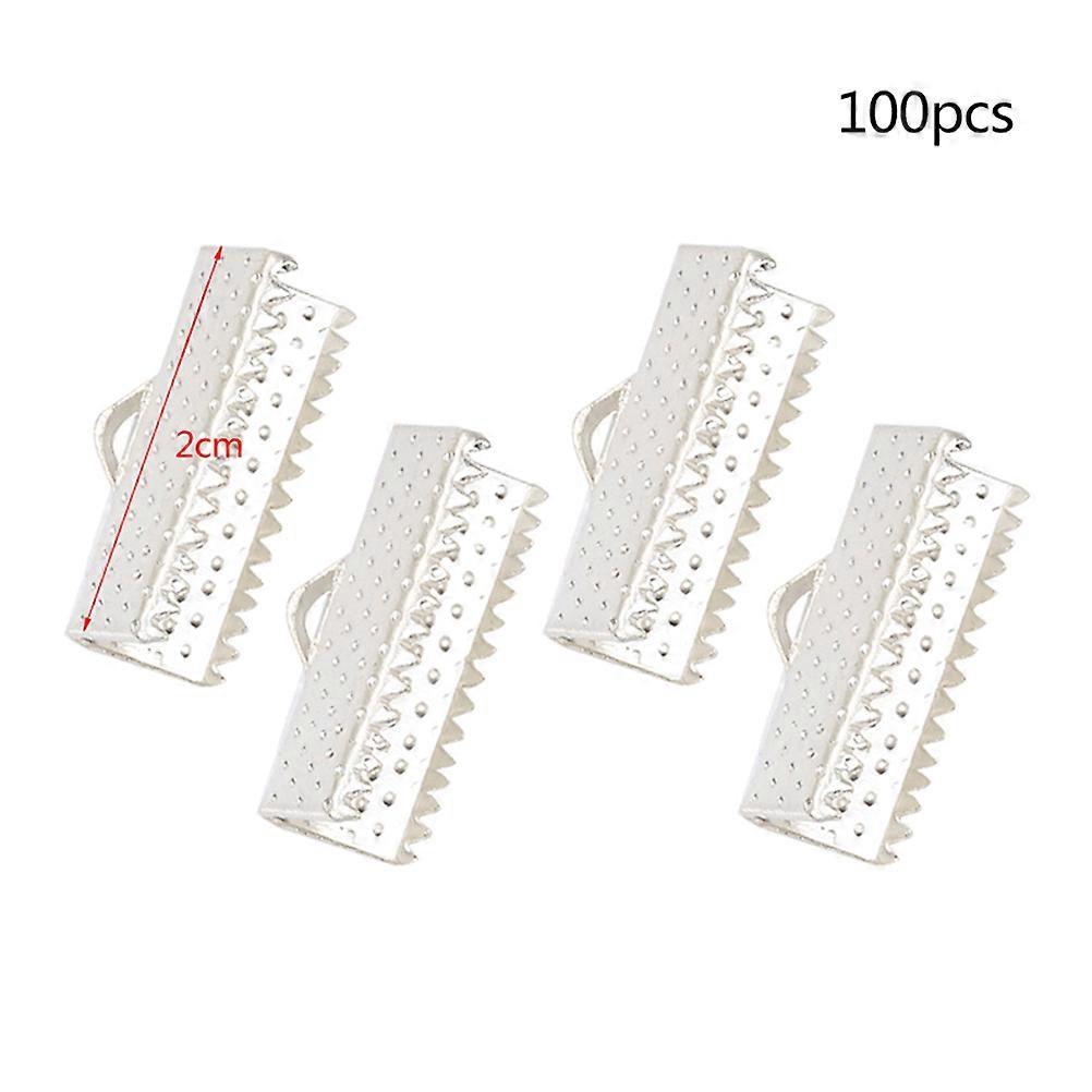 100PCS 2CM Plated Ribbon Ends Metal Fastener Clasps Textured Crimp End Clamps Cord Ends Buckles Zipper Clips DIY Jewelry Accessories (Silver)