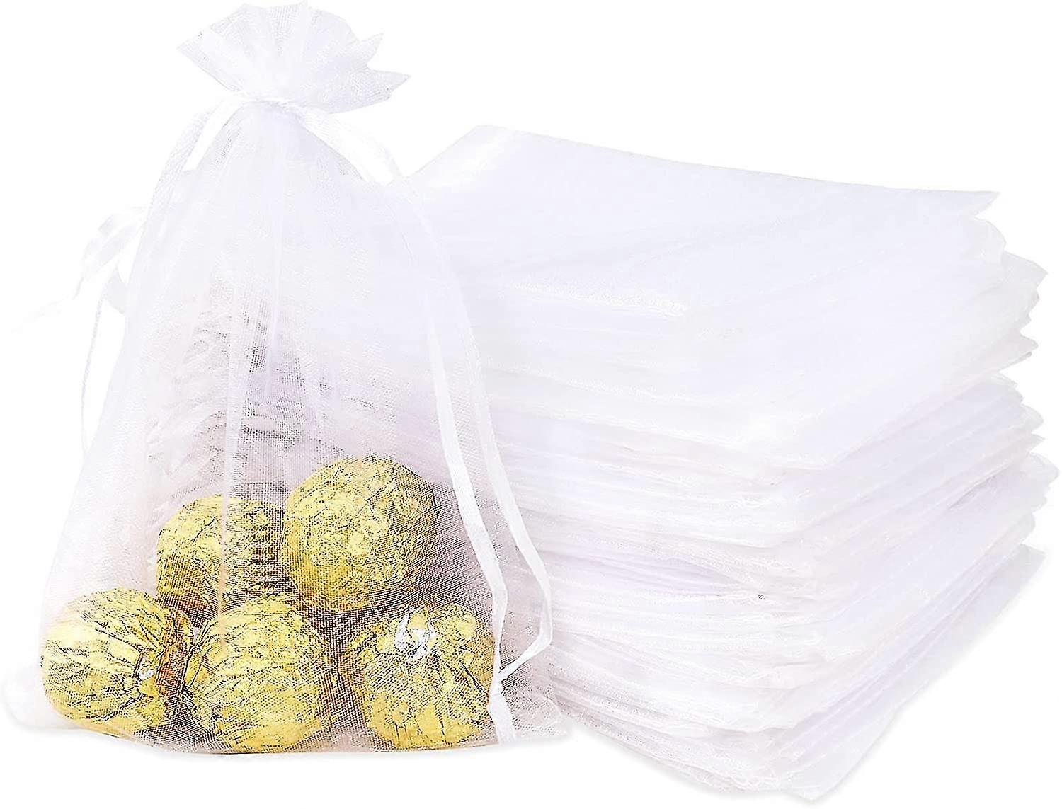 100pcs Organza Bags Jewelry Pouches 7x9cm Small Gift Bags Wedding Favor Bags For Candy Party Festival Christmas Anniversary White