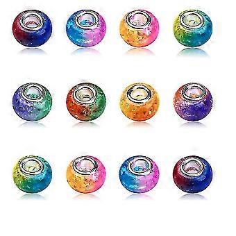 100pcs Colorful Rondelle Glass European Beads Large Hole Spray Painted Glass Slide Charms