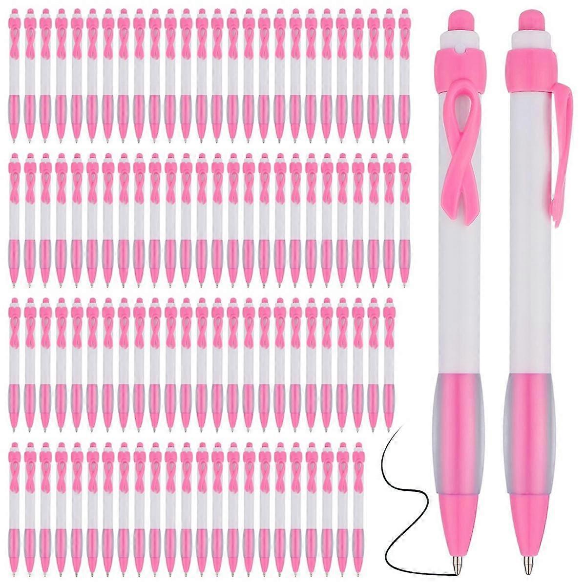 100Pcs Pink Ribbon Pens Bulk, Black Ink Retractable Ballpoint Pens for Office Supply Women Girls Gi