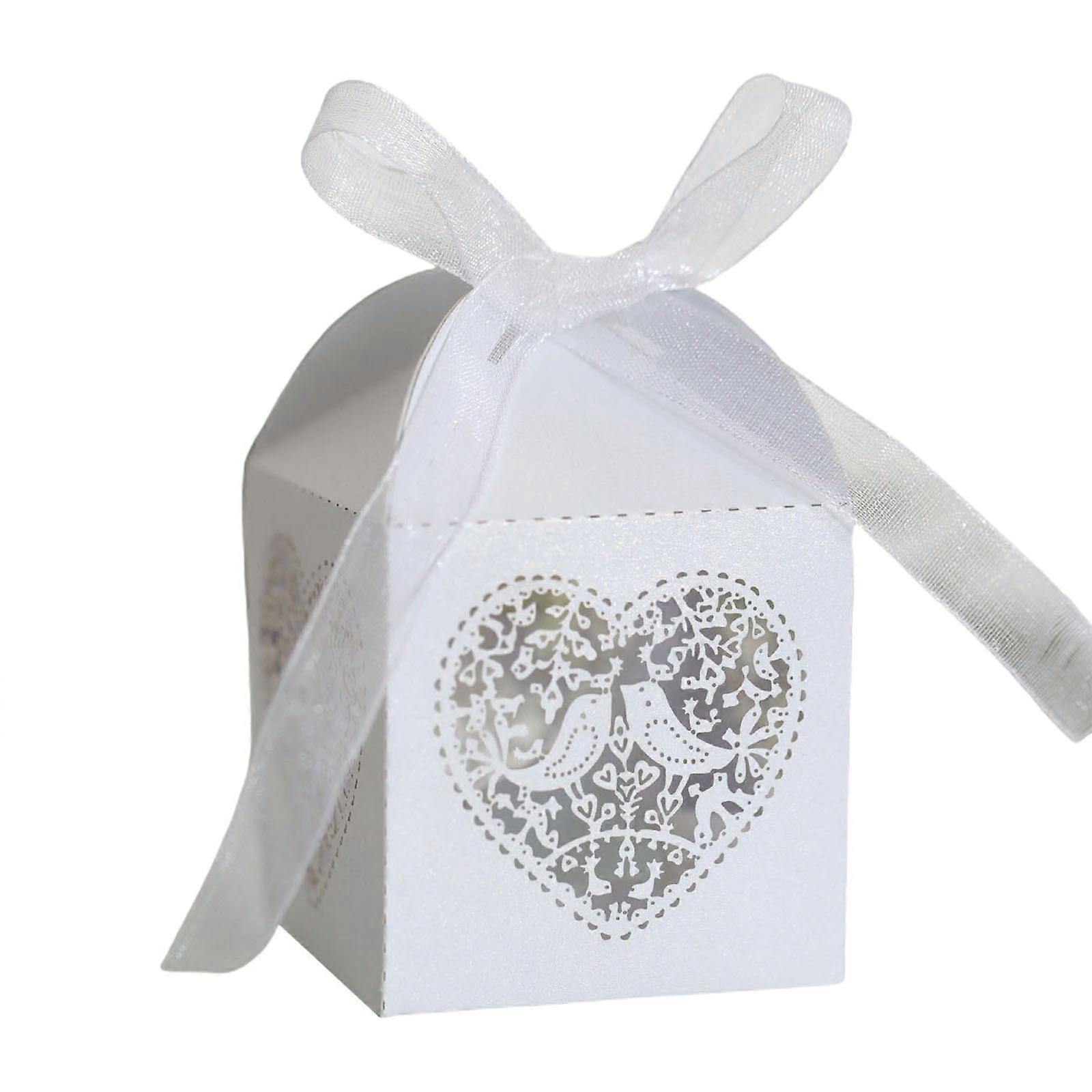 100pcs Wedding Candy Boxes Lovebirds Design Luxury Lase Cut Party Wedding Favor Ribbon Gift Box Valentine's Day