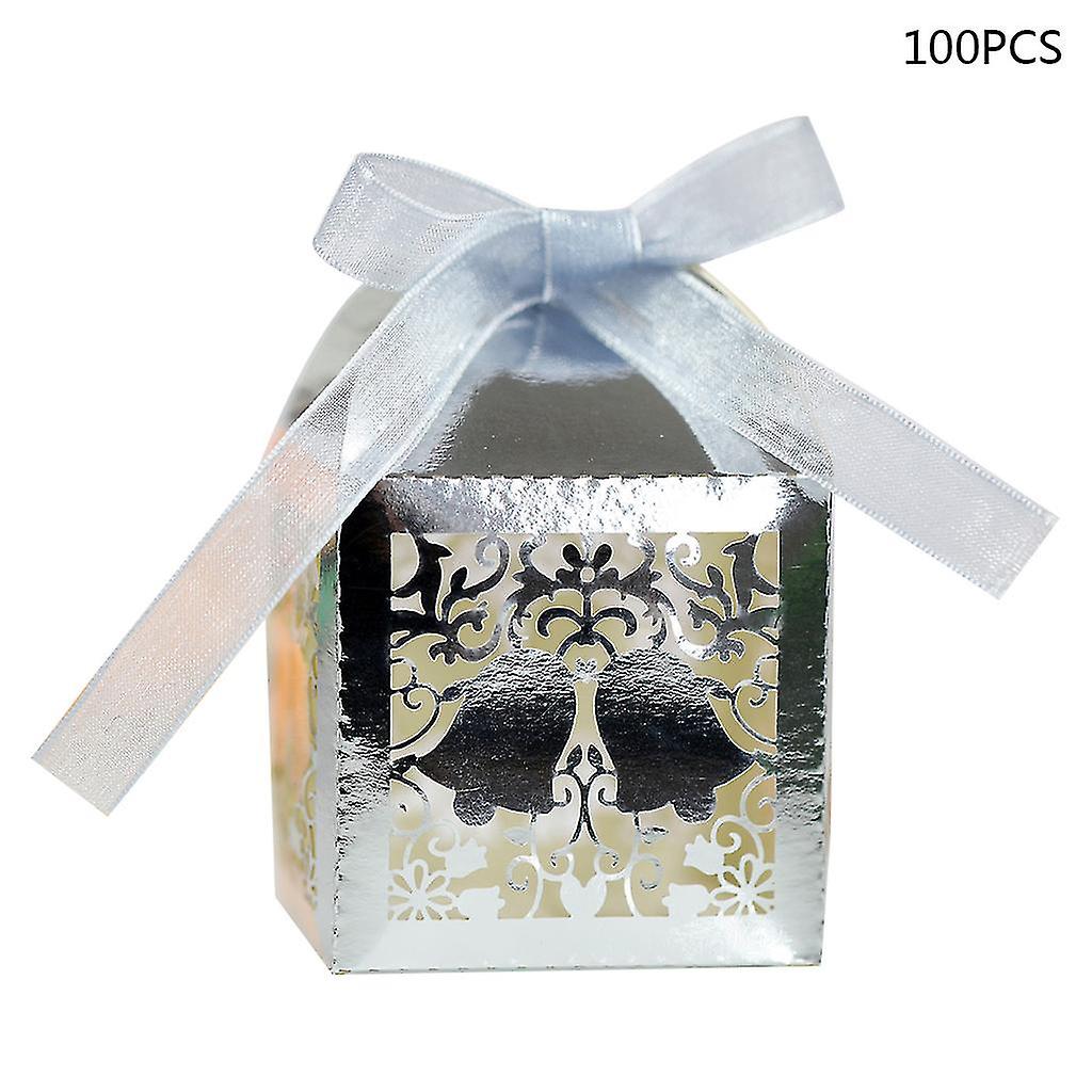 100pcs Christmas Bell Hollow Cut Favor Gift Candy Box Storage With Ribbon Baby Shower Wedding Party Supplies @bugu
